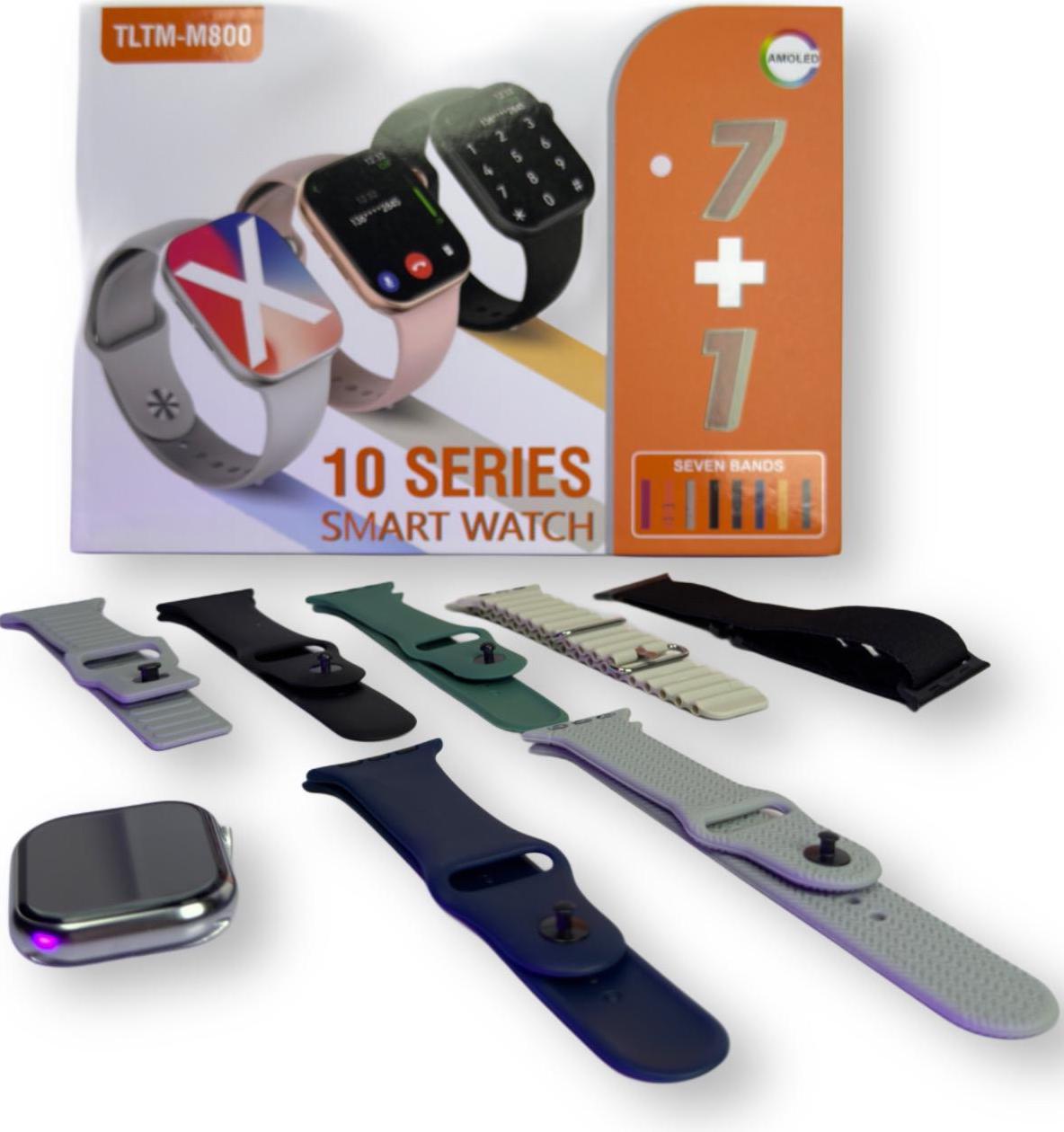 بكج SERIES 10 نسخة الاصل اموليد 7 كاسكيت TLTM-M800 - ساعة سمارت ذكية<p>ساعة TLTM-M800 الذكية بتصميم عصري وشاشة AMOLED عالية الدقة، توفر لك تجربة استخدام متكاملة تشمل إجراء واستقبال المكالمات، تتبع اللياقة، التنبيهات الذكية، وغير ذلك. تأتي الساعة مع 7 قشاط بألوان وأشكال متنوعة، لتغيير المظهر بسهولة حسب المناسبة.<br />